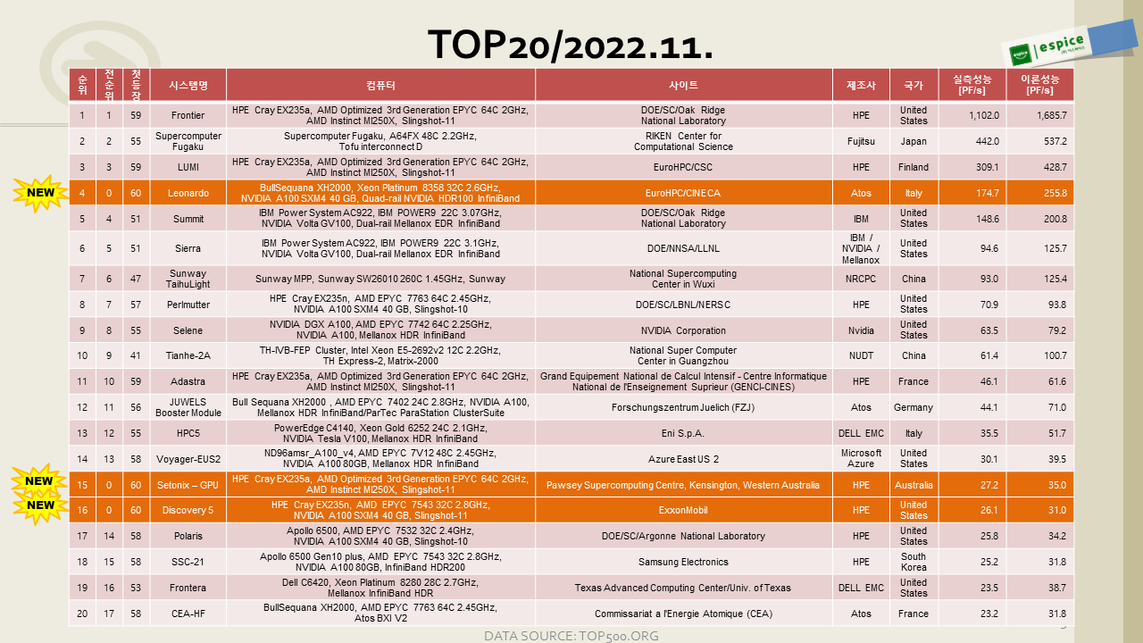 1년에 두 번 공개하는 TOP500 슈퍼컴퓨터 순위가 지난 주에 발표되었습니다.