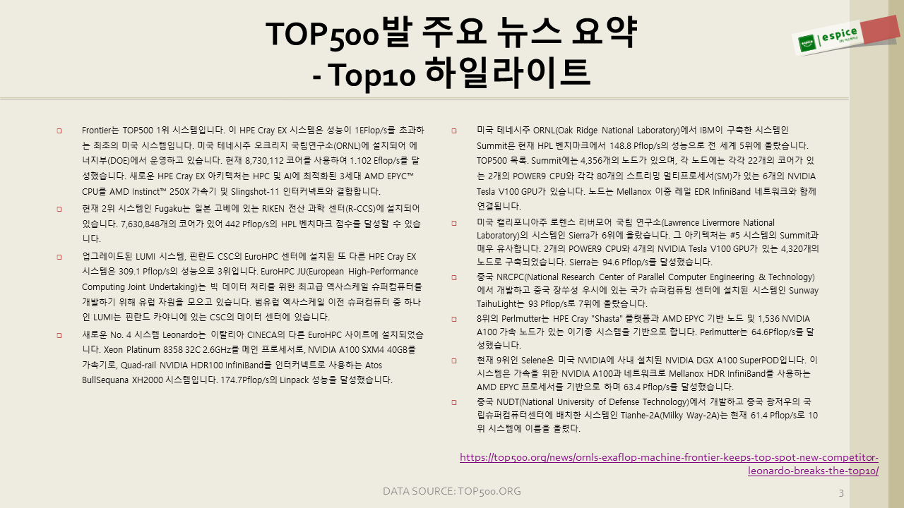 일단 TOP500 공홈에 올라온 주요 뉴스들 번역입니다.