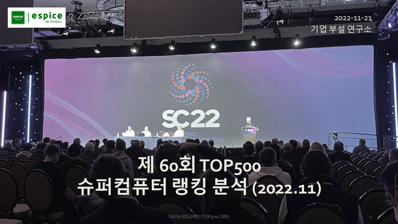11월 중순에 미국 댈러스에서 있었던 SC22에 참관하면서, TOP500 순위 발표 세션도 보고 와서