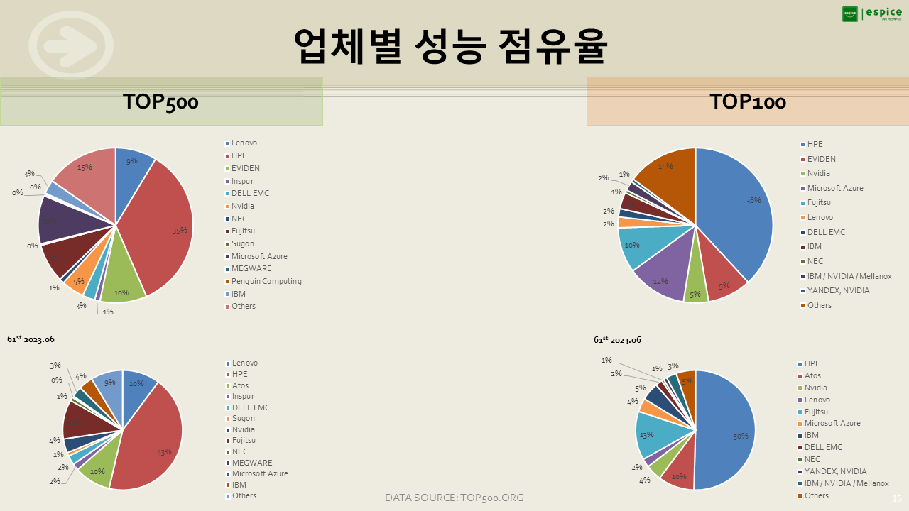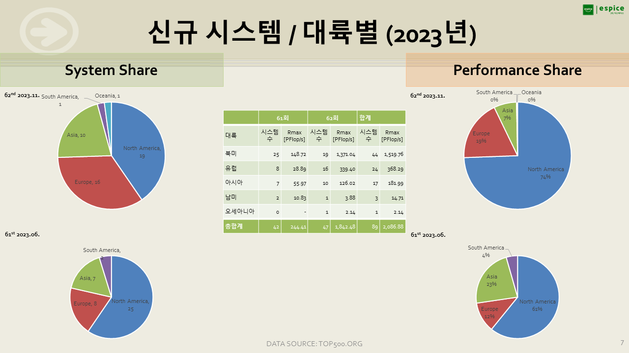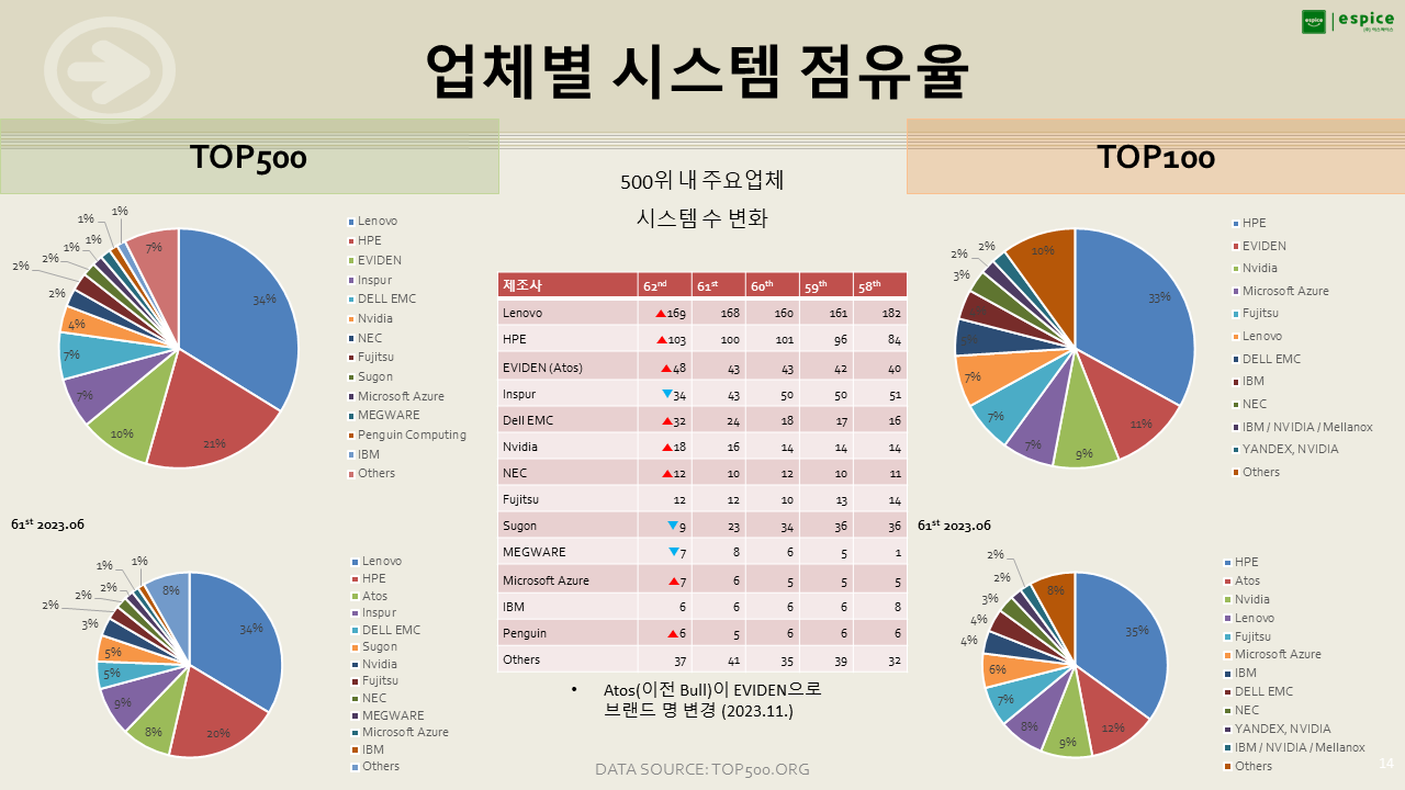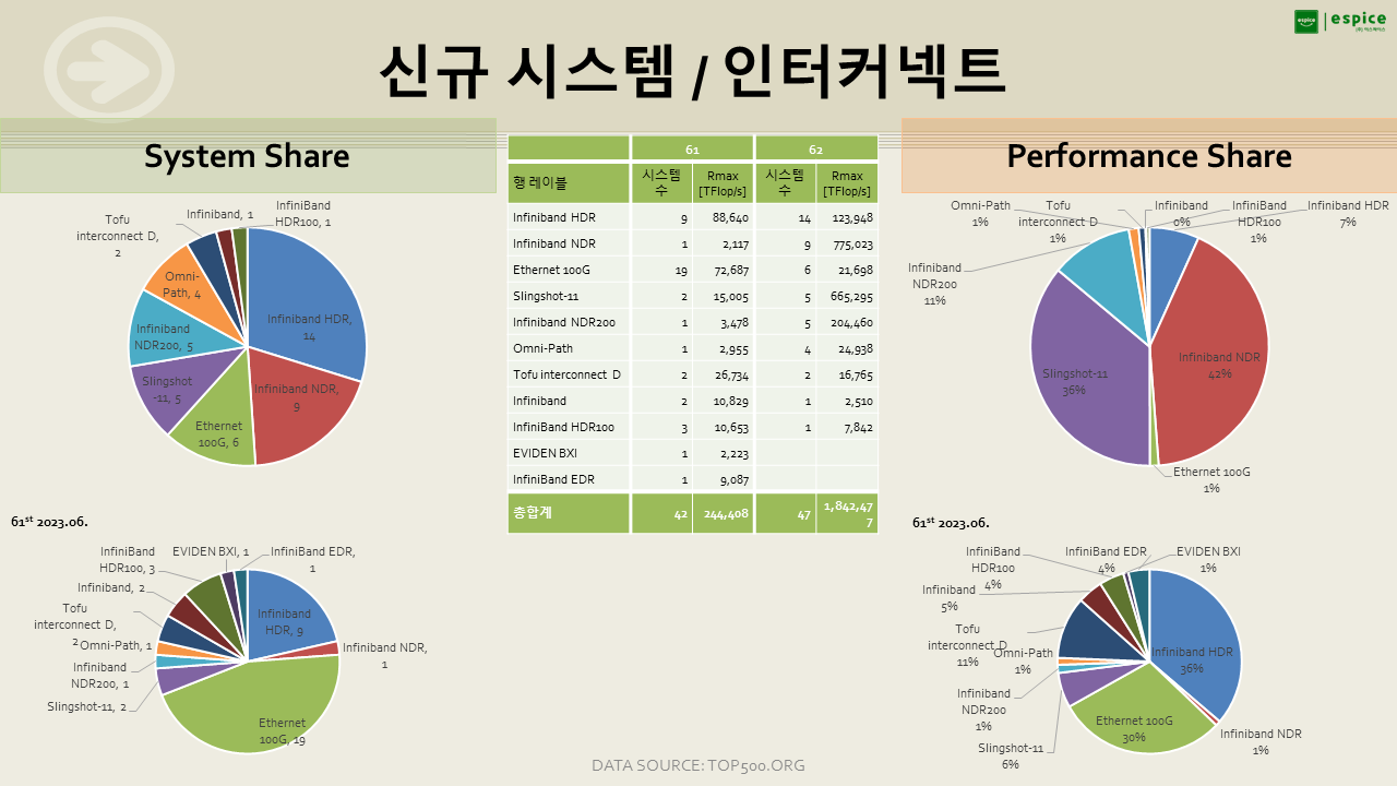 ※ 모든 자료는 Top500.org 홈페이지에 공개된 500위까지의 순위 데이터를 이스파이스 연구소 자체적으로 분석 정리한 것입니다.
