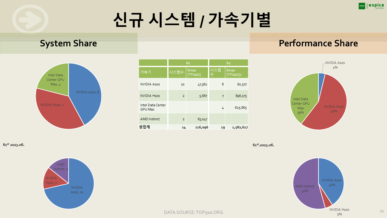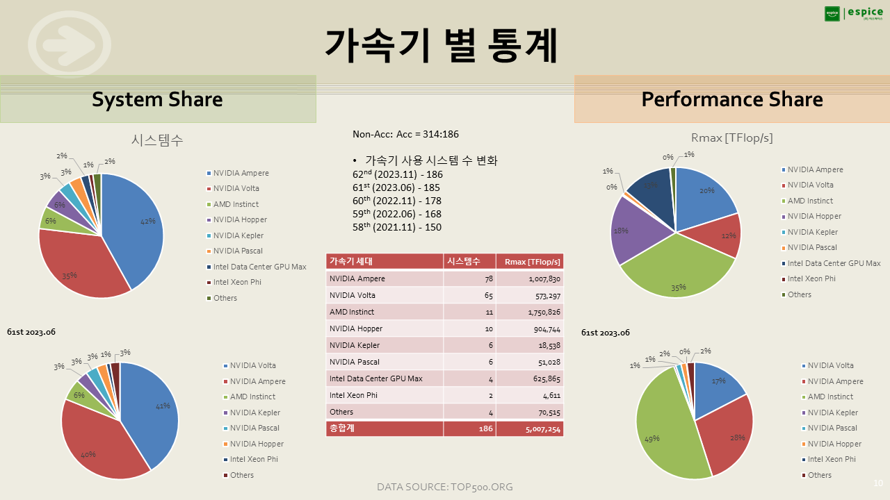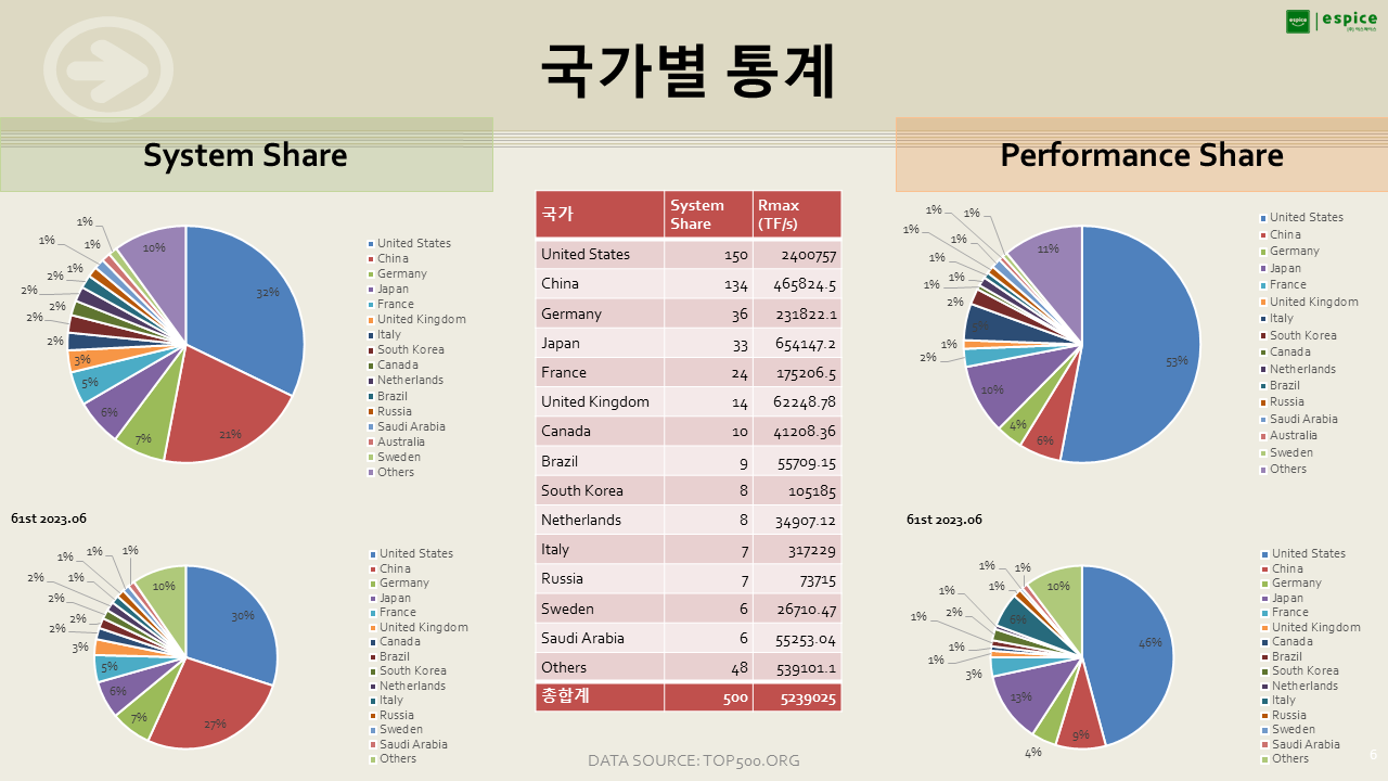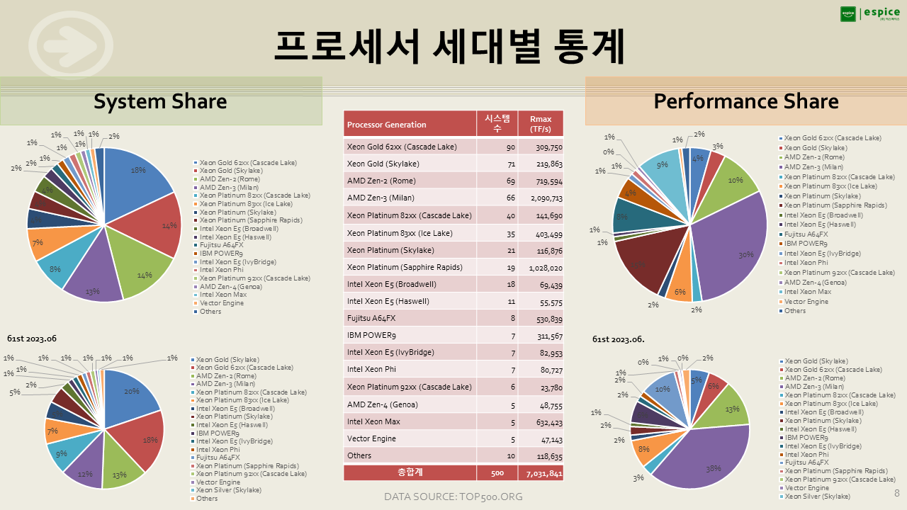 ※ 모든 자료는 Top500.org 홈페이지에 공개된 500위까지의 순위 데이터를 이스파이스 연구소 자체적으로 분석 정리한 것입니다.