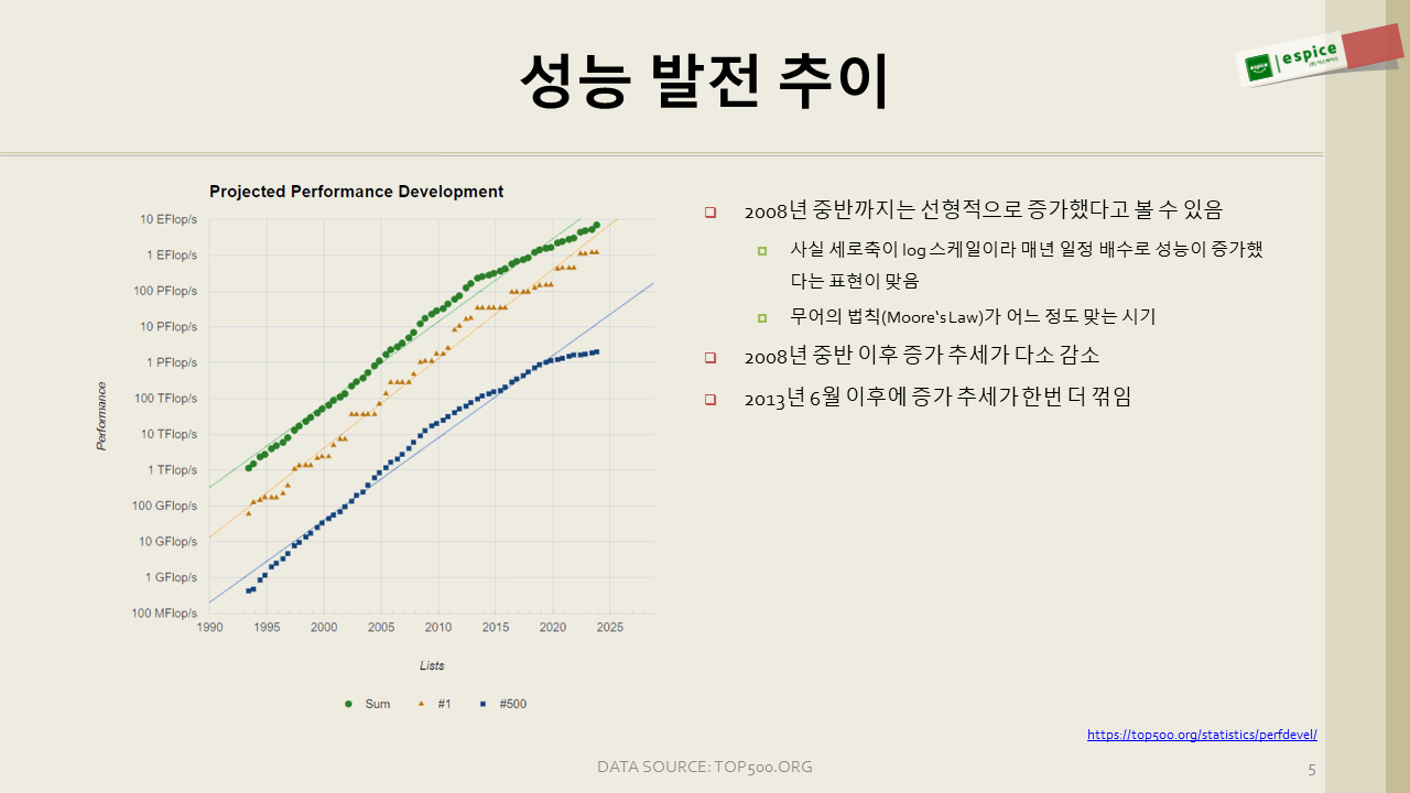 수퍼컴이라는 것이 컴퓨터 산업의 최고 성능이 필요한 부문이다 보니, 기술 동향을 엿보기에 가장 좋은 지표 중 하나입니다.